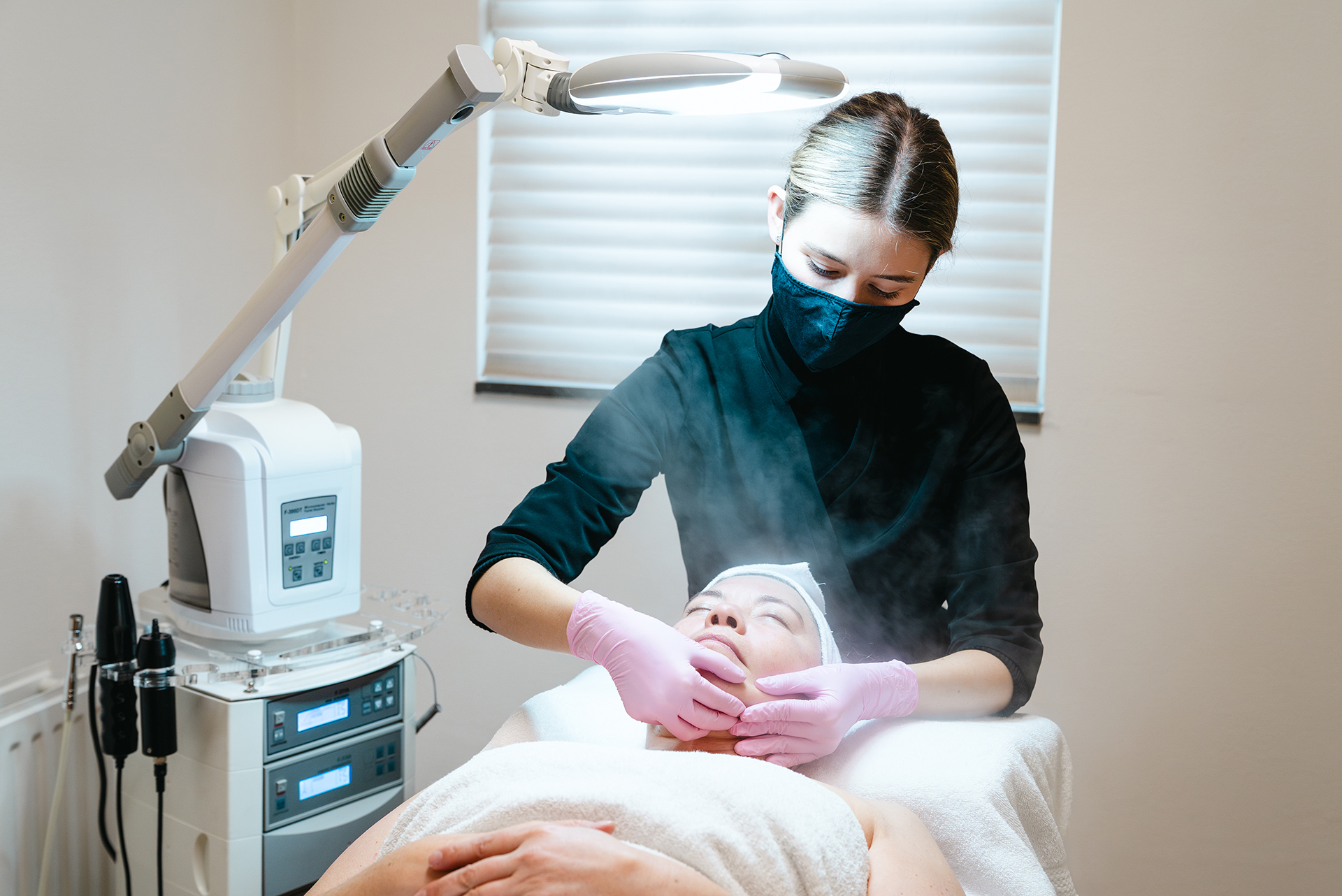 • Hoogfrequentie – desinfecteert de huid, stimuleert de doorbloeding en werkt bacteriedodend; ideaal bij een vette of acnegevoelige huid